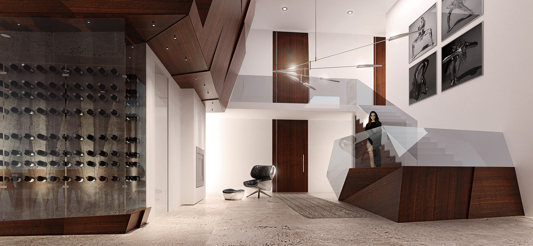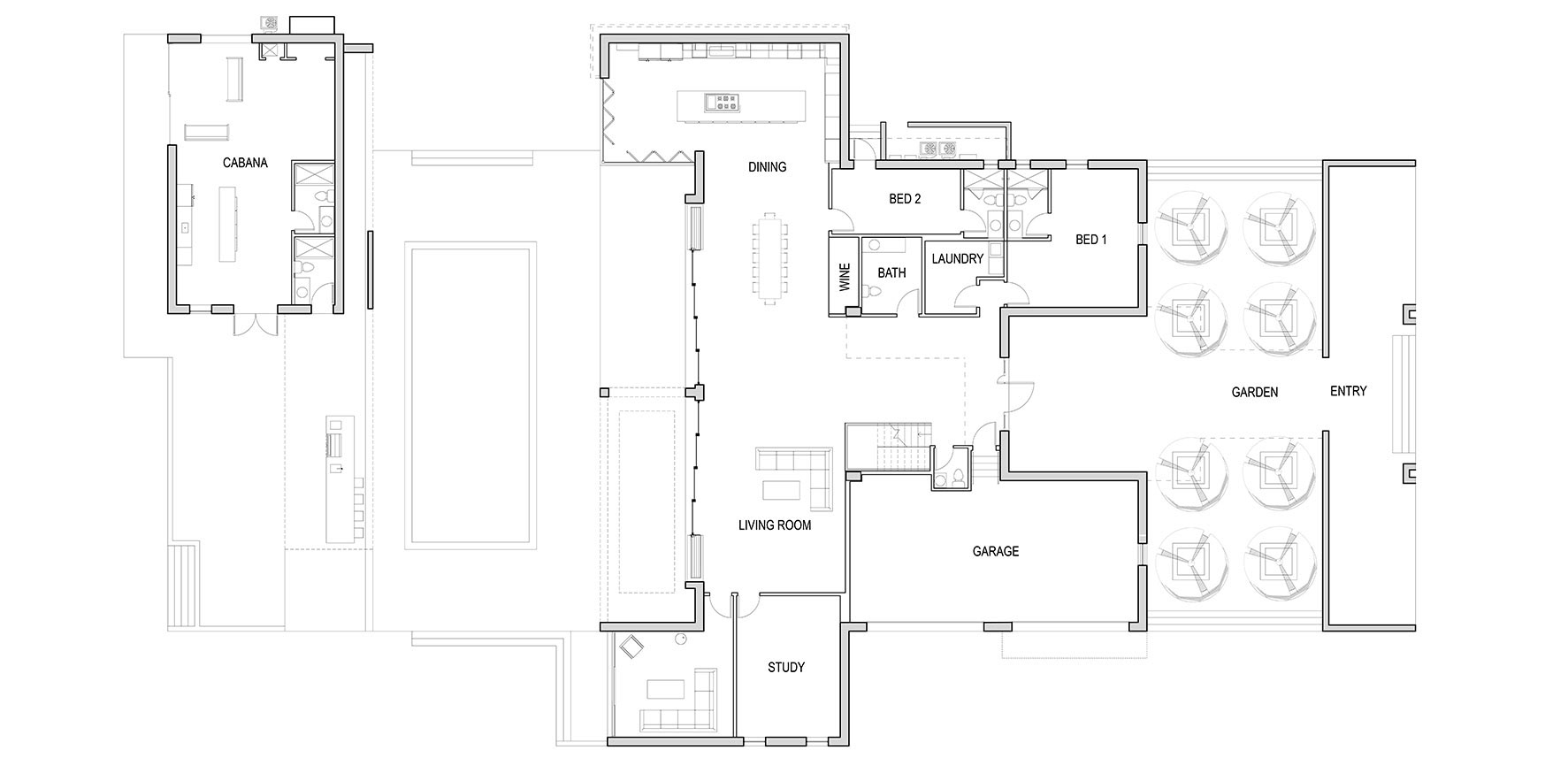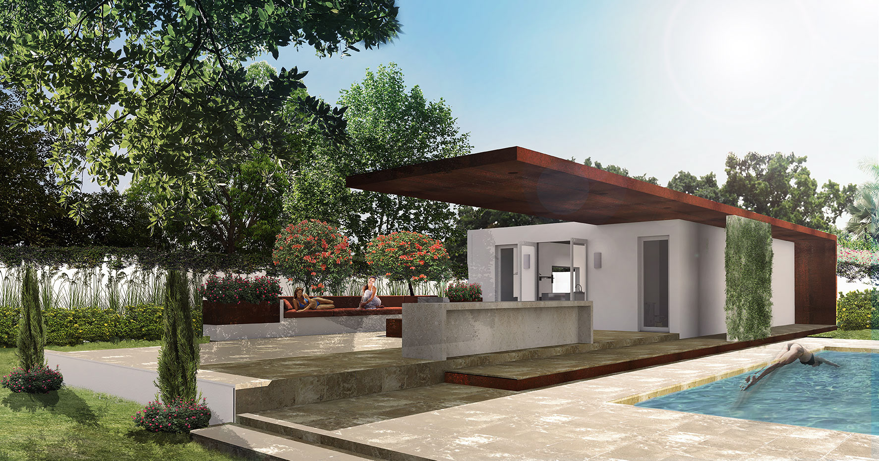 The Basile Residence sits on 2 acre lot in the City of Pinecrest, Miami-Dade, Florida. The house is based on a series of layers that begin with a procession into the front of the house. The front structure is a transformation of a typical historic porch meant to receive guests and host events at the home. The next layer is a garden area which not only separates the house but also creates an organic pause between the inside and outside of the home. Upon entering the home there is a larger volume which gives a sensation of openness as if the sky that was left behind in the front of the first structure while the last and final layer is a series of complex geometries serving as a transition from the structures interior to the outdoor pool and cabana area.
