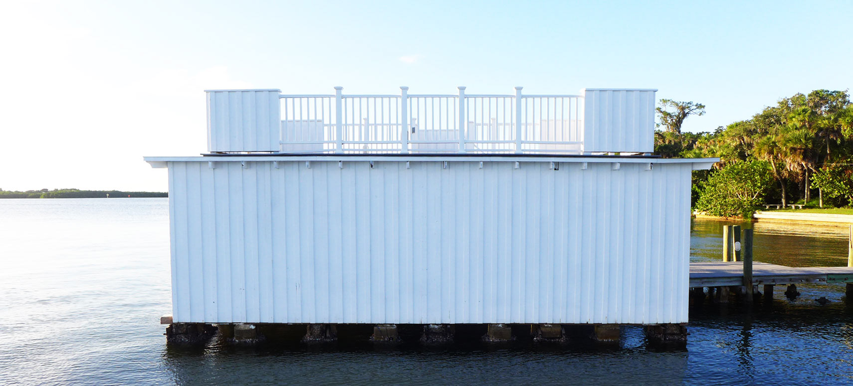 The bathroom building at Bay Preserve was commissioned for the Conservation Foundation of the Gulf Coast. This building sits on a historic campus that has 6 buildings for the foundation. The campus is used for the foundations work, events and teaching activities. The bathroom building was designed to look “transparent” in a field of historic buildings by having a green confederate jasmine vine that covers the outside of it. This building is handicap accessible and displays a signature modern railing in order to distinguish the new structure from the rest of the period historic buildings.