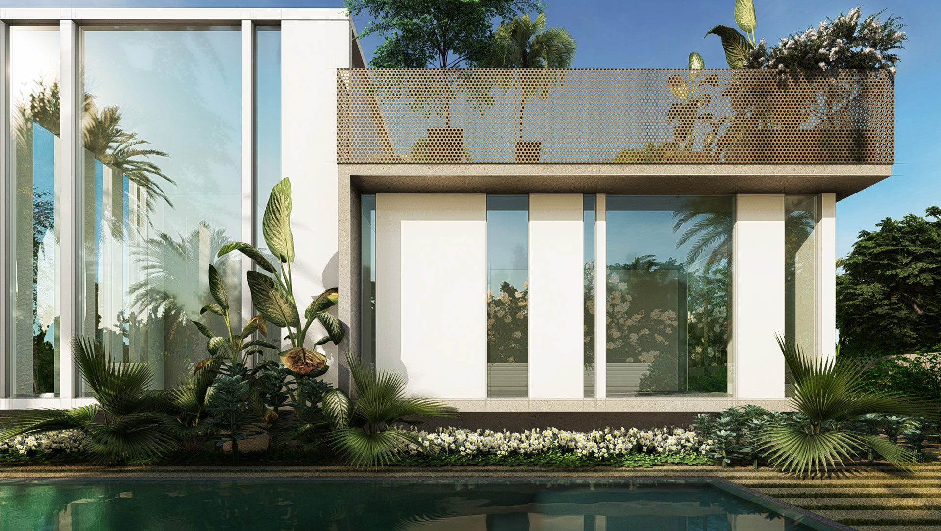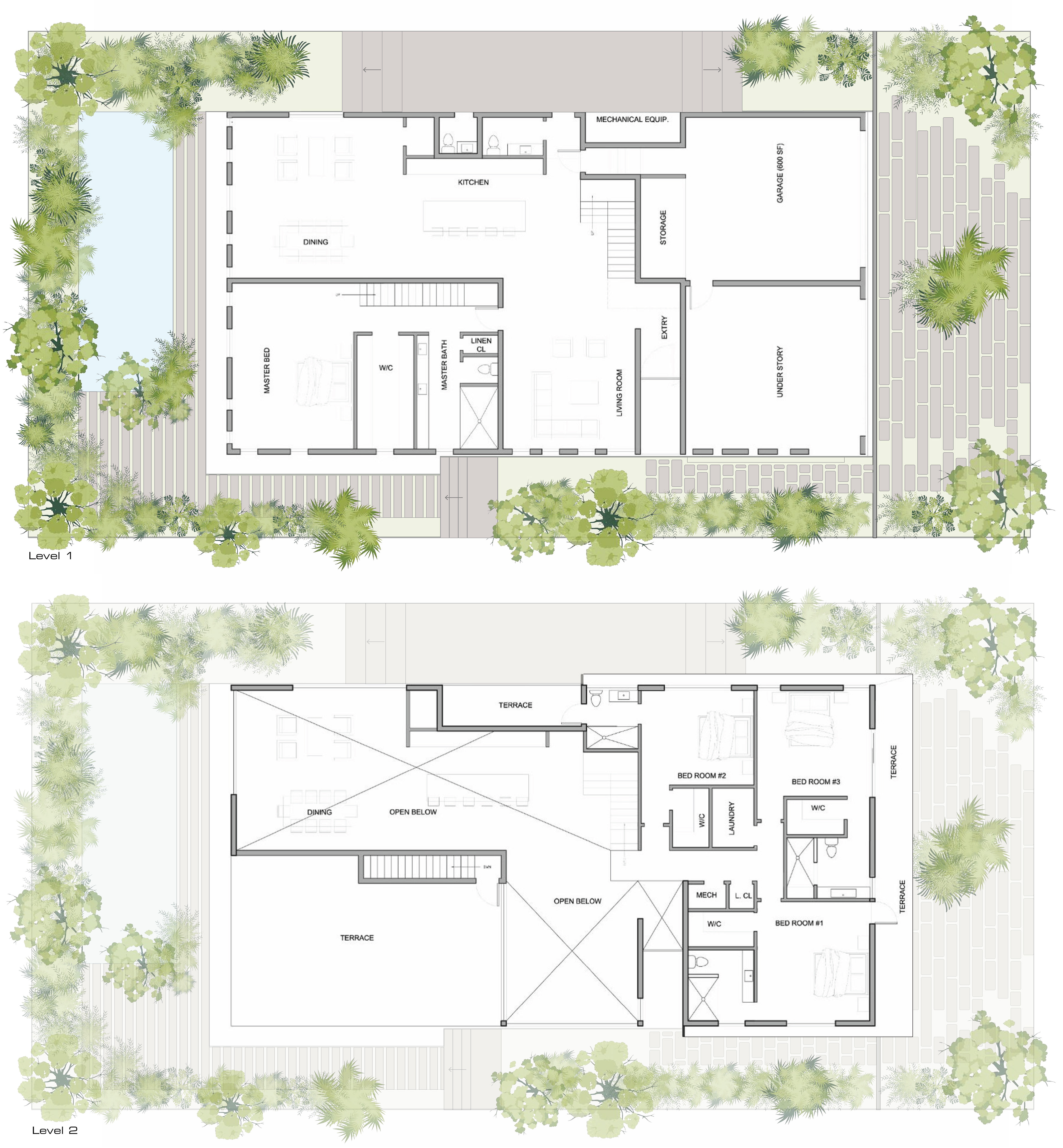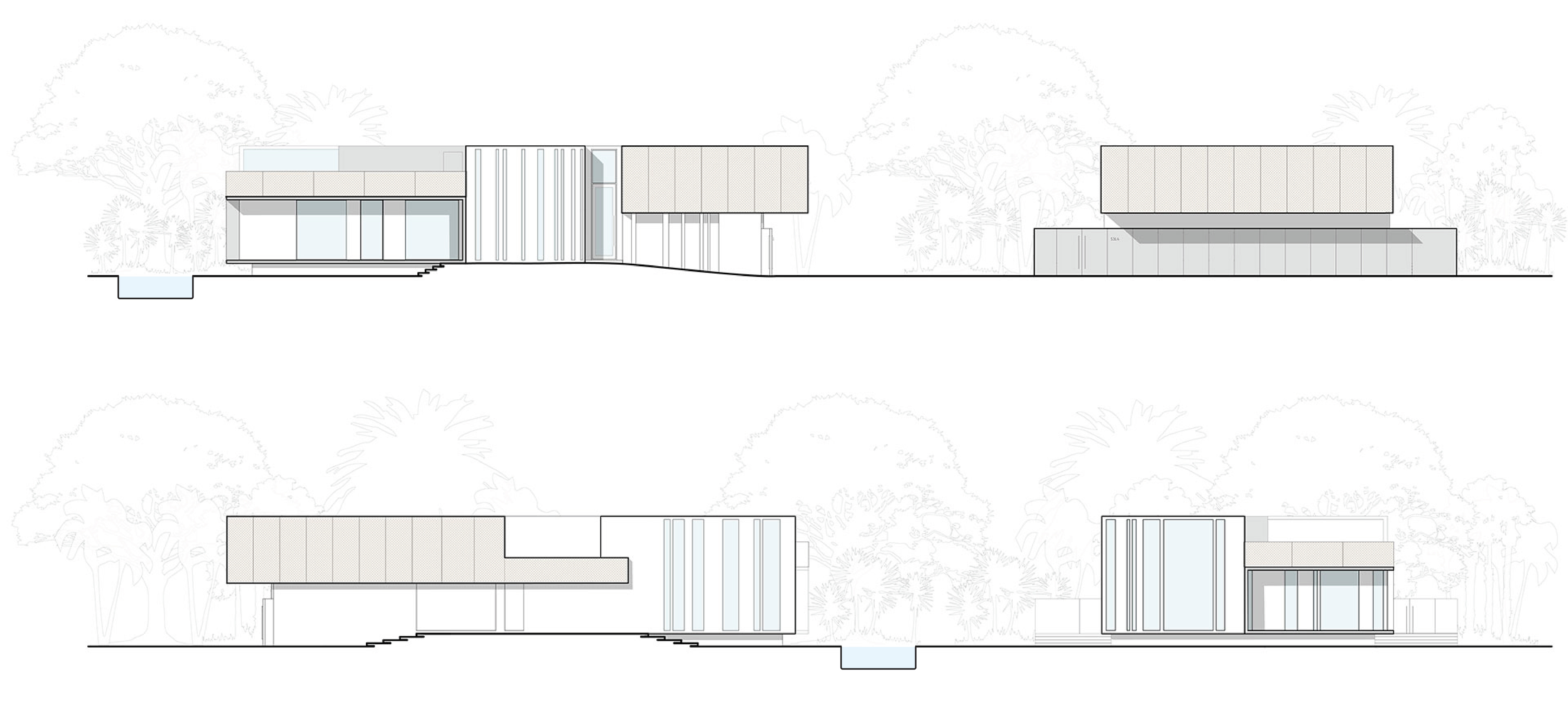 The Pinetree house is a concept in blending the minimal forms of an architecture in contrast with not just its landscape, but also with its infill urban site. As with any new construction in Miami Beach the structure is 100% resilient to rising waters. The interior and exterior work simultaneously in sync as one space blends into another from inside to outside. There has been great care to expose details that delineate the designs flow with the indoor/ outdoor volumes and surfaces. This house is a testament to raw materials blending into the landscape so that the occupant has a constant reflection of the spaces from inside to outside.