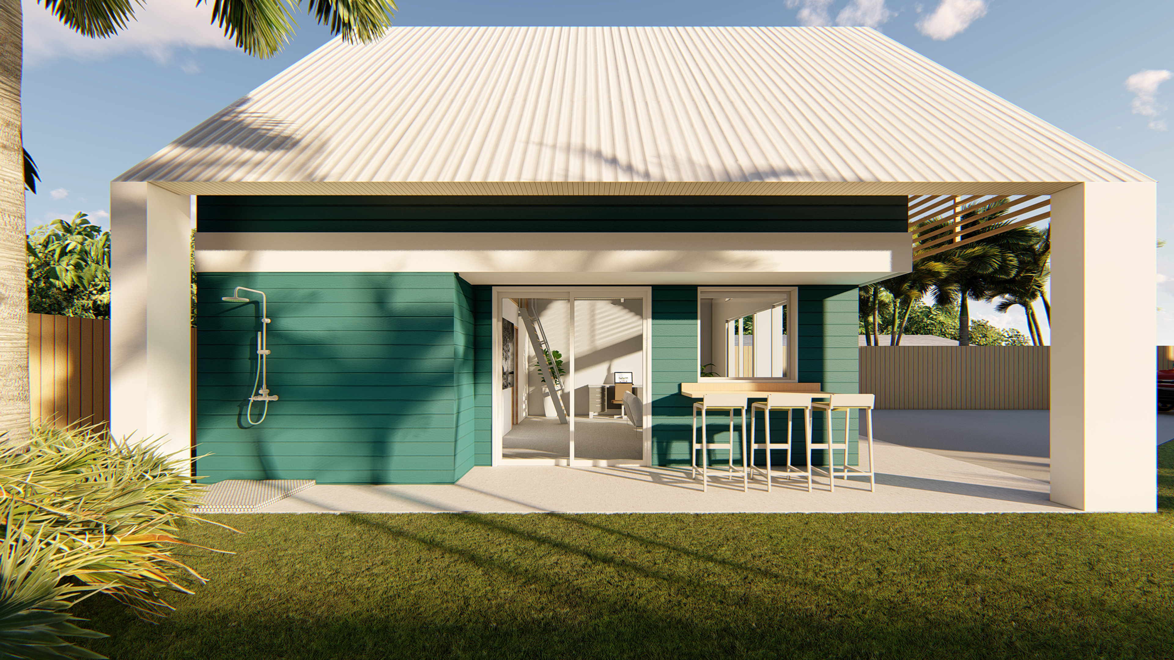 thIS PROJECT focuses on the reNOVATION OF THE GARAGE OF THIS RESIDENCE. THE PROGRAM THAT THE CLIENT REQUIRED A SPACE FOR THE KIDS TO PLAY, AN AREA FOR DRINK/MEAL PREP WITH A SERVING WINDOW . The design intent is to have the additions reflect the clients MODERN MINIMAL STYLE while ALSO respecting the FLORIDA VERNACULAR THAT IS COMMON IN THAT AREA .