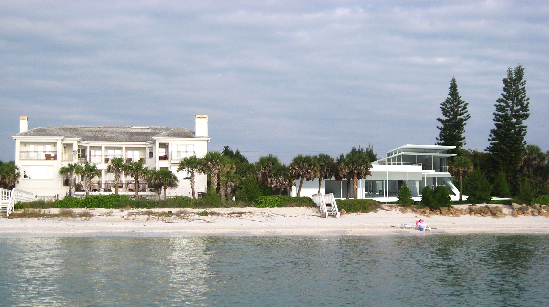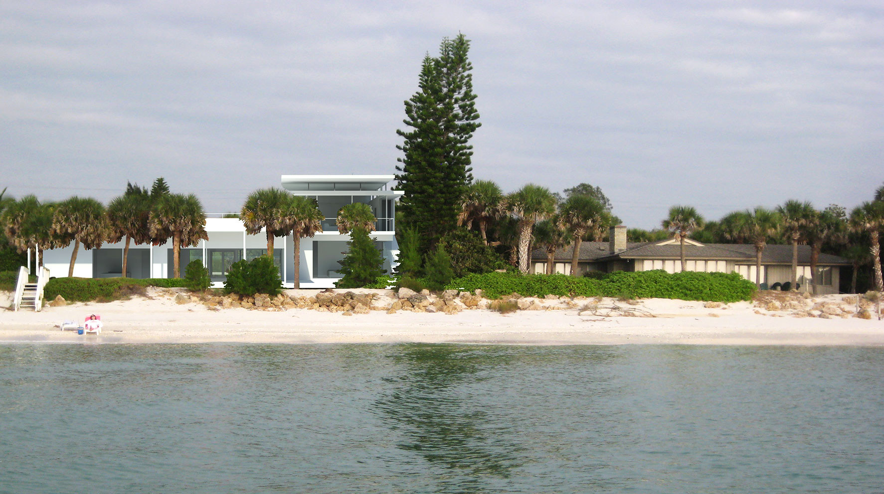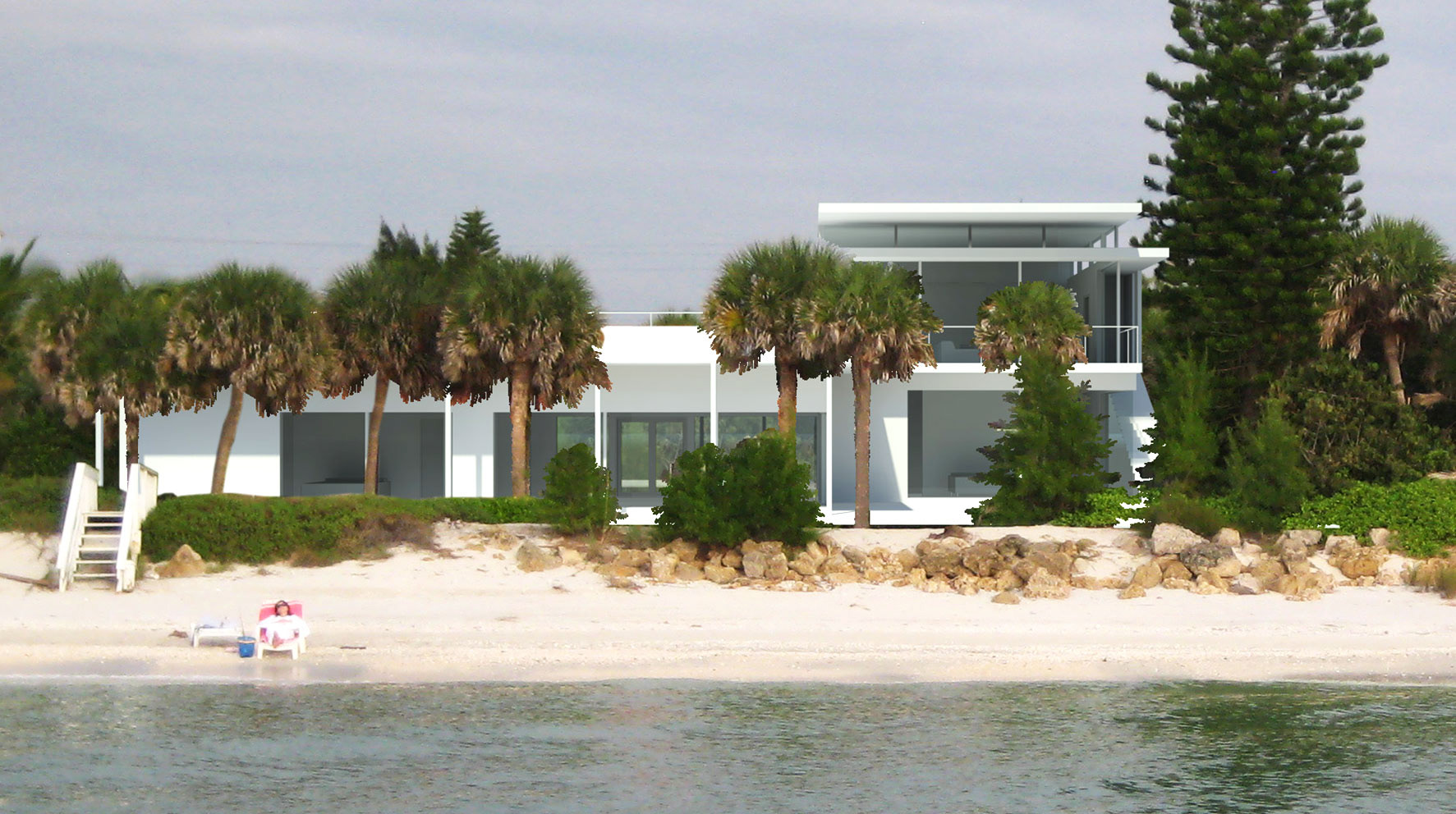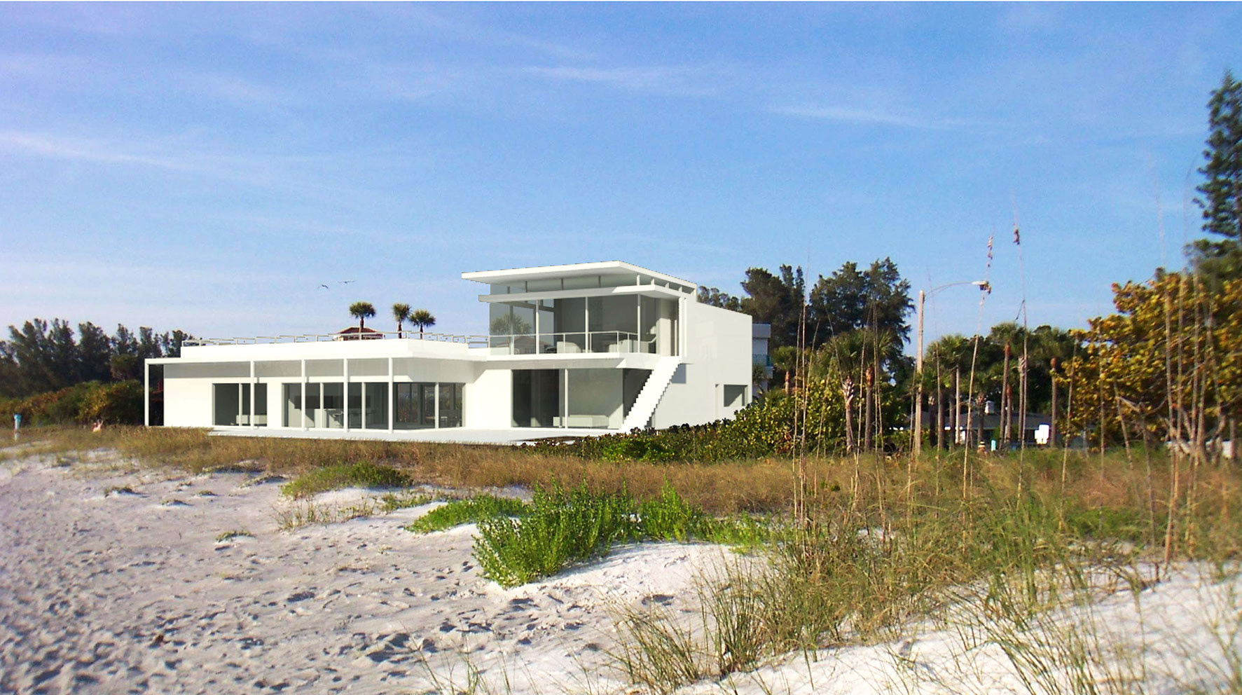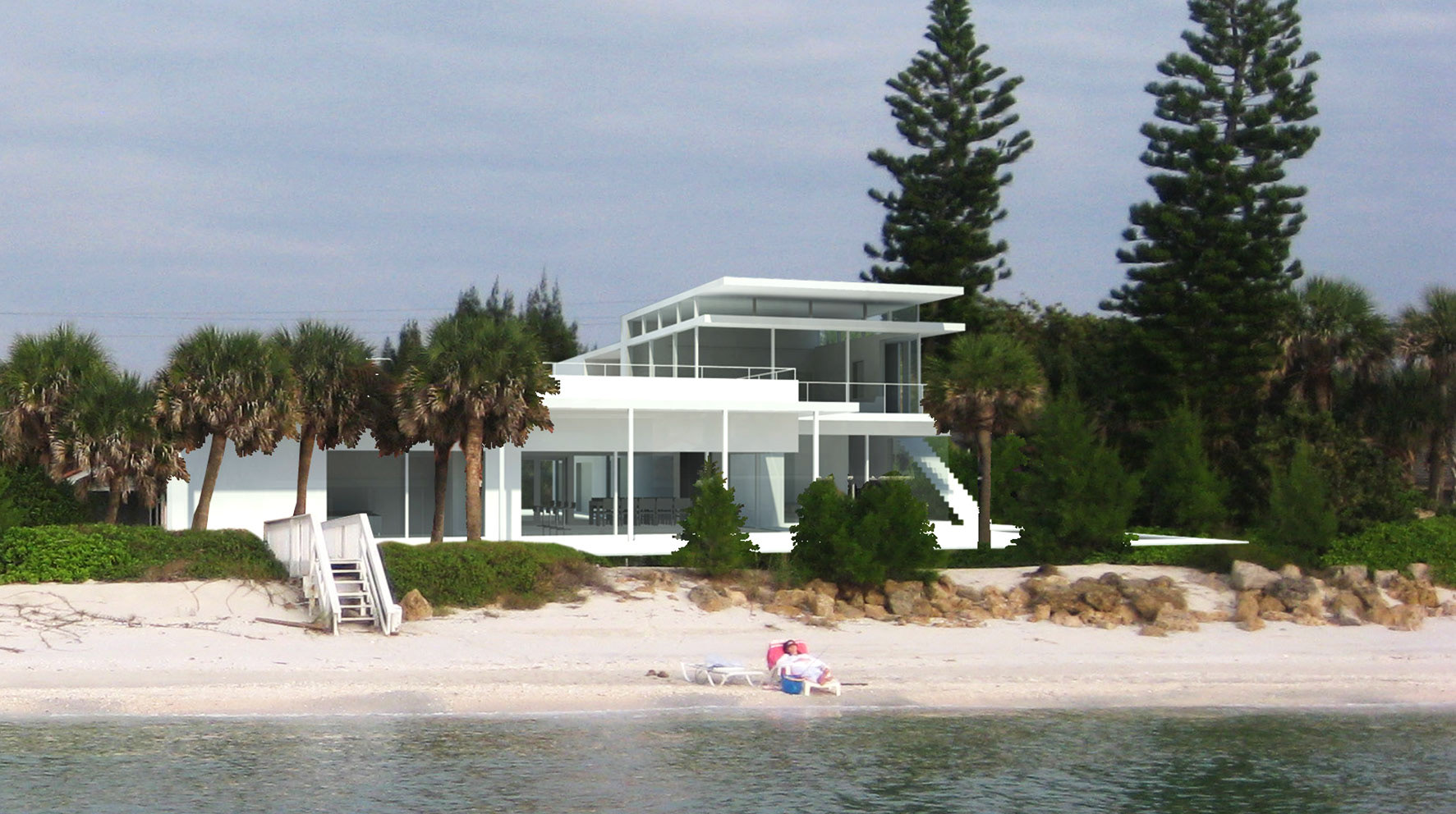 The Jecik House is located on Casey Key, Florida where there is a great mix of modern architecture stretching from Paul Rudolf, Toshiko Mori and Carl Abbott. The stark white volumes of the house sits in contrast to the lush field of natural landscape which needed to be preserved. The house also boasts a 1200 sf terrace which can be accessed from the gardens or the second floor.