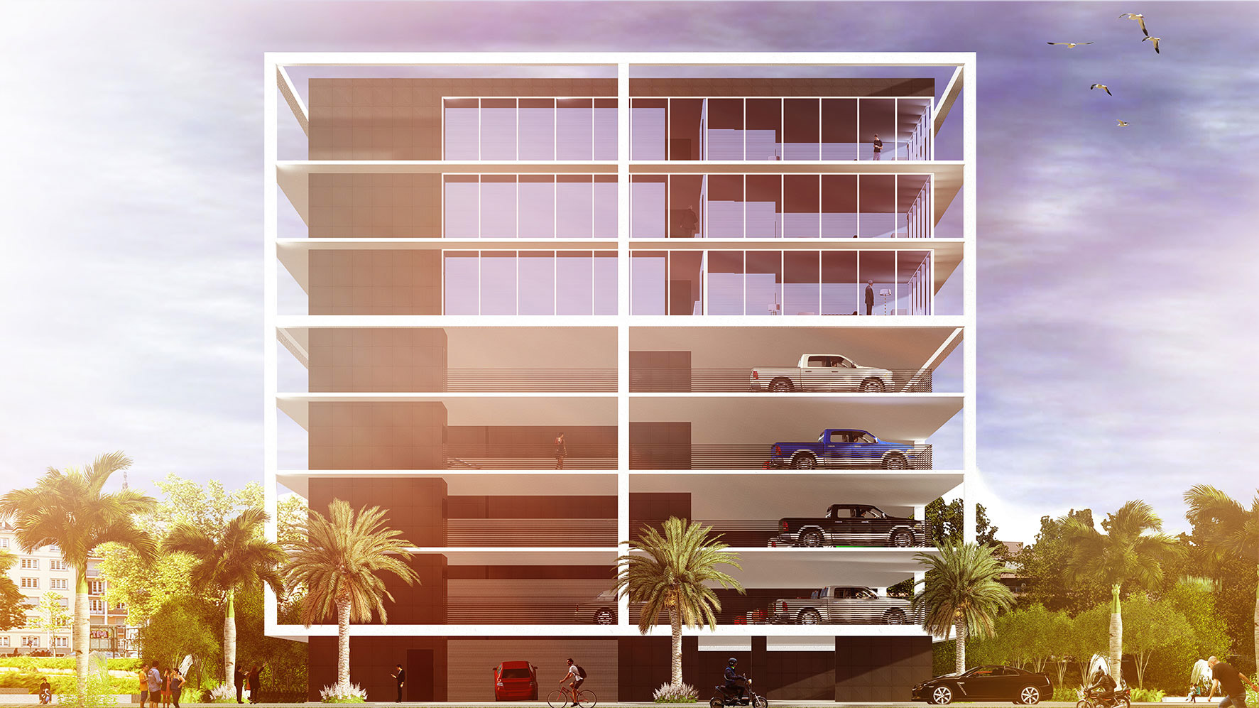 The Vespucci Towers is located in Miami, FL. The bottom floors serves the public with retail shops to promote a pedestrian friendly environment while the garage accommodates both the retail and mixed use offices above. Each floor amounts to 1600 sf that has flexible layouts to allow for multiple tenant configurations.